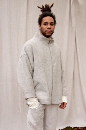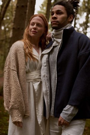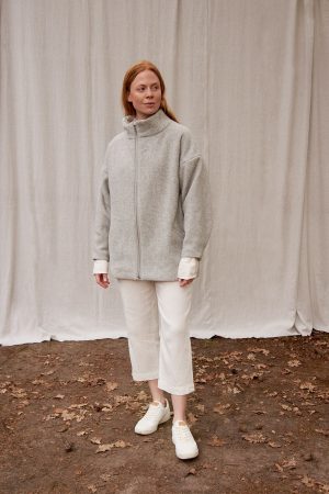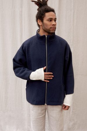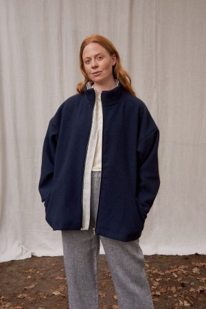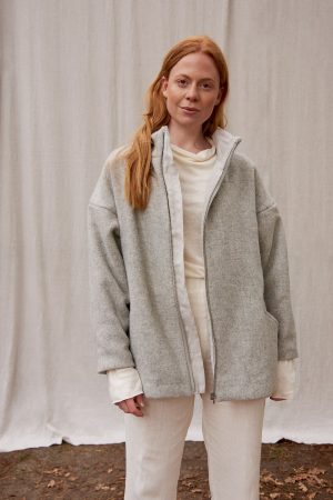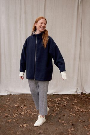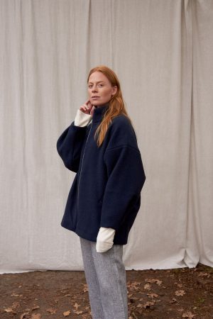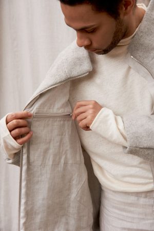 Der Bio Wollfleece Longblouson ist auch als leichtere Variante aus gefüttertem Bioleinen erhältlich.