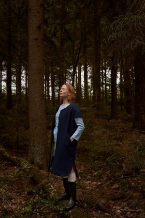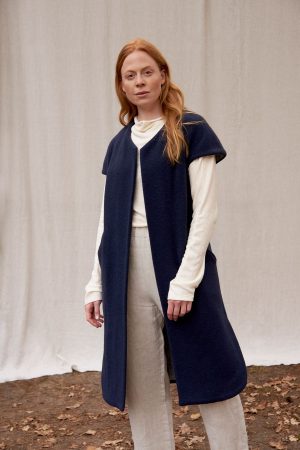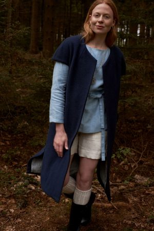 Lange, kuschelige Weste mit Gürtel und Leinenfutter. Smilla hat einen leichten V-Ausschnitt, unser typisches grafisches Taschendetail und Schlitze an den Seiten. Der Saum ist vorne abgerundet, hinten eckig und länger und der Ärmelausschnitt ist überschnitten. Mit unserer Weste Smilla, kommst Du wunderbar durch alle Jahreszeiten.