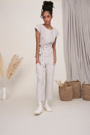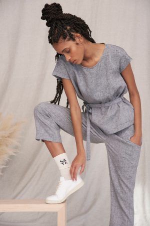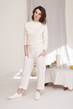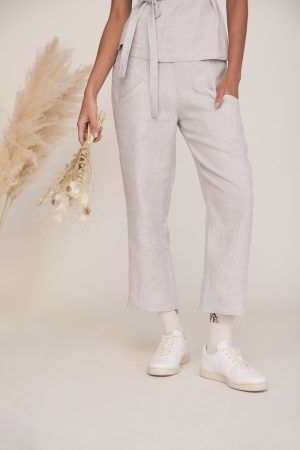 Hoch geschnittene Hose mit leicht regulierbarem Einziehgummiband, geradem Bein und verkürzter Beinlänge, Alva hat einen breiten Saum mit Schlitz und lässig tief sitzende Taschen als grafisches Taschendetail.